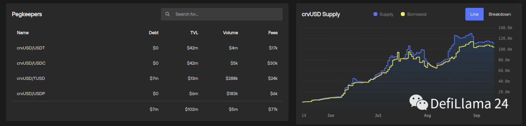 crvUSD的操作模式与Maker PSM相似。当crvUSD的价值超过1美元时,会进行铸币操作;反之,则会销毁。与Maker PSM不同的是,它不依赖外部输入。在2023年上半年,市场观察发现,这种自主的稳定机制使得crvUSD能够在没有外部资金或抵押品的影响下,仅通过自身合约就实现了价格的稳定。