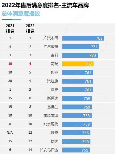 2022年,汽车市场竞争异常激烈,而售后服务满意度对品牌声誉至关重要。奇瑞竟然以762分的高分排名第四,这其中的服务秘诀究竟是什么?
