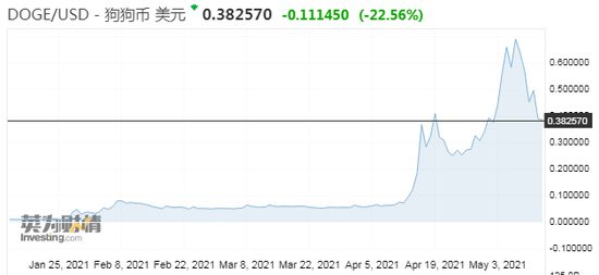 早间马斯克宣布不接受比特币付款,接着数字货币就集体大幅下跌。比特币的价格跌破了 5 万美元的关口,狗狗币在日内下跌了 22%,从上周的历史高点被腰斩。这种巨大的价格波动体现出了数字货币具有高风险的特性。与传统投资品相比较而言,这种波动是非常极端的。例如在股票市场中,即便某家公司突然遭遇重大负面消息,导致股票跌停,也很少会像数字货币这样如此迅速且大幅度地下跌。